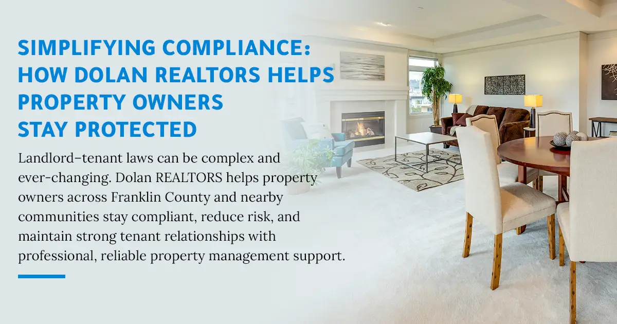If you own rental property in Franklin County, St. Louis County, St. Charles County, Warren County, Gasconade County, or surrounding communities, Dolan REALTORS offers property management services designed to support compliance, communication, and long-term investment success.